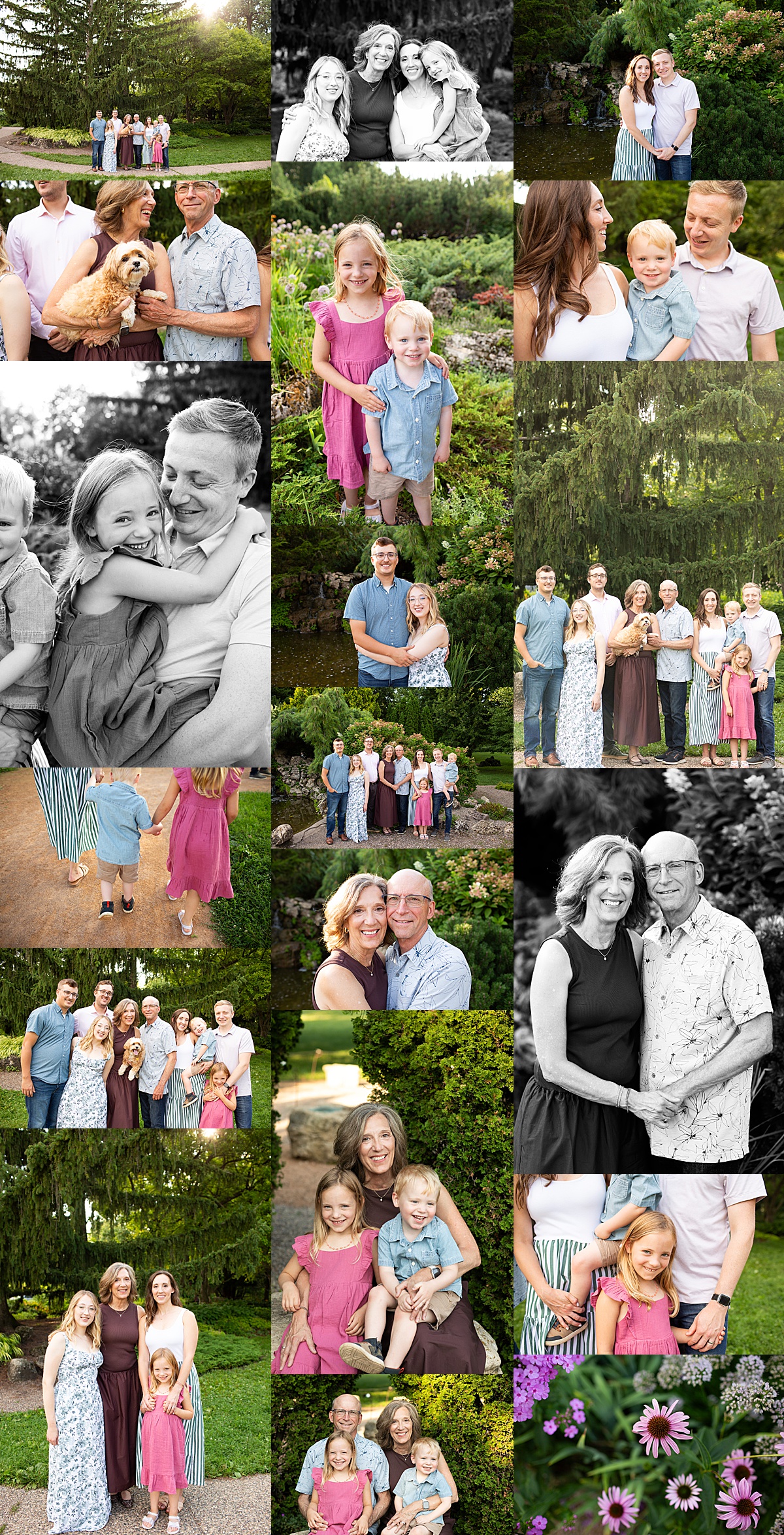 This family aced their photography session at the Minneapolis Rose Garden and brought Oma and Opa, plus the cutest Havanese dog ever. My extended family sessions are always a combo of classic, posed, every-look-at-the-camera-and-smile images, as well as candid interactions to capture the generations and their love for each other.